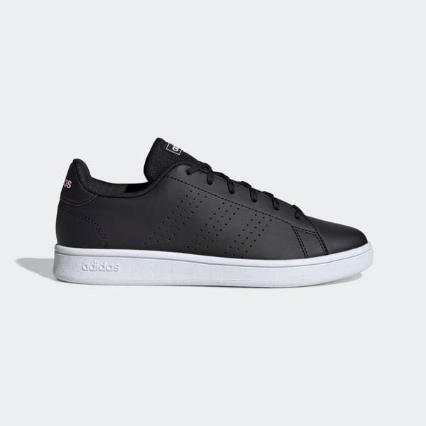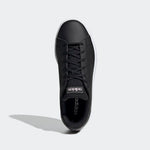 A court look for the streets. These shoes have a sleek leather-like upper punctuated with perforated 3-Stripes. The low-profile shape rides on a smooth rubber cupsole.
