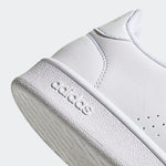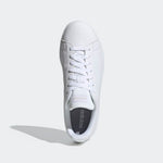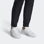 A court look emerges on the streets. These shoes have a sleek leather-like upper punctuated with perforated 3-Stripes. The low-profile shape rides on a smooth rubber cupsole.