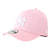 New York Yankees Womens 9FORTY cap features a pink crown with a raised New York Yankees logo embroidered in white on the front. The cap also has an adjustable cloth strap with metal buckle at the back.
