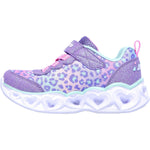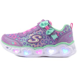 She'll love to be spotted in colors and lights with the Skechers S Lights: Heart Lights - Untamed Heart shoe. Soft woven mesh fabric and smooth glitter finish synthetic upper in a slip on stretch laced light up sporty sneaker with multi color heart-shaped detail light up midsole.
