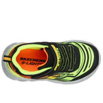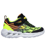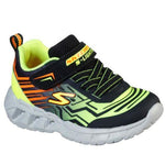Bright young minds light up with sporty fun wearing the SKECHERS S Lights: Magna-Lights - Bozler shoe. Synthetic and mesh fabric upper in a slip on athletic sporty training sneaker with stitching accents and light-up midsole.
