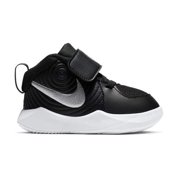 The Nike Team Hustle D 9 captures style from the basketball court in a durable design. Soft foam cushions little feet for comfort that lasts all day.