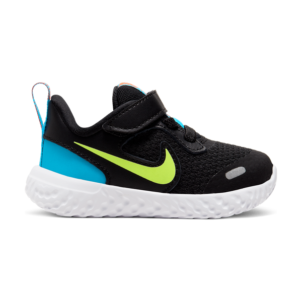 Nike Revolution 5 Baby/Toddler Shoe REVOLUTIONARY COMFORT. Run, play and have fun with the Nike Revolution 5. It wraps little feet with durable leather for support and soft foam cushioning for revolutionary comfort. A strap make it easy to take the shoe on and off.