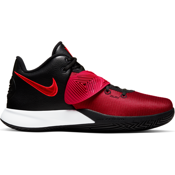 Kyrie Flytrap 3 Basketball Shoe PLAY QUICKER ON YOUR EDGE. The quicker you are in and out of cuts, the faster you can break down the defense. Built for Kyrie Irving's unmatchably quick game, the Kyrie Flytrap 3 combines full-foot support and containment, responsive cushioning and an aggressive outsole that's contoured for seamless movement through impossibly tight lanes. Side-to-Side Traction Curved outsole has a tread pattern that wraps the midsole from side to side, maintaining traction on your edges as you transition through your stride. Responsive Cushioning The Zoom Air unit provides low-profile, responsive cushioning to help drive you down the court. Lock In Fast A hook-and-loop strap crosses over the laces to secure your foot over the footbed. Basketball Swoosh Swoosh designs are embroidered into the collar, including thick stitching that resembles the seam lines on a basketball. Traditional tongue connects to footbed to help keep it from slipping during play. Flywire cables combine with forefoot bands to lock you in.