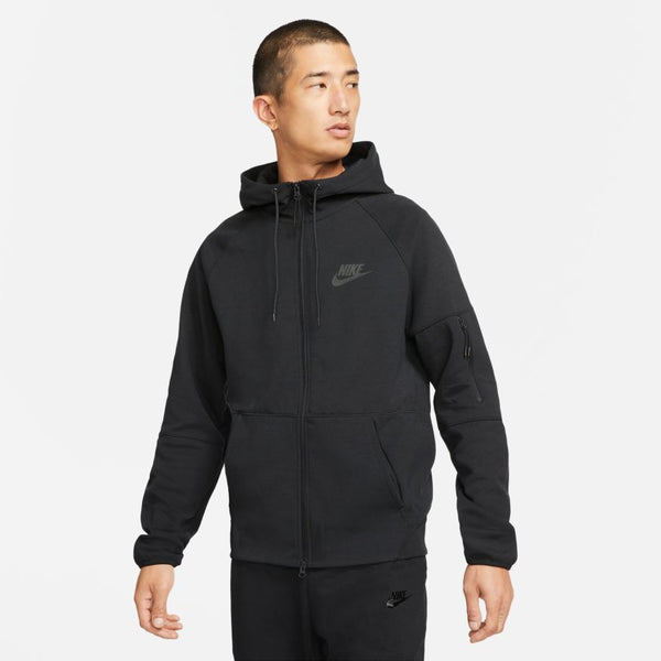 Nike Sportswear Tech Essentials Men's Full-Zip Fleece Hoodie A VERSATILE ZIP-UP WITH SIGNATURE TECH DETAILS. The Nike Sportswear Tech Essentials Full-Zip Hoodie elevates a layering staple with signature details and a comfortable double-knit fabric. A utility pocket, articulated construction and unique hem design help separate this versatile layer from classic hoodie designs.