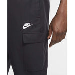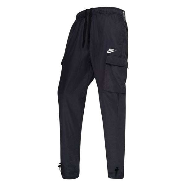 Switch up your look with these men's Players Woven Cargo Track Pants from Nike. In a navy colourway, these standard-fit pants are made from woven cotton twill with a smooth mesh lining for comfort. They feature slightly tapered legs with adjustable cuffs, as well as an elasticated, draw cord waist for a custom fit. With cargo pockets for your essentials, these pants are finished with signature Nike branding. Machine washable. | Our model is 6'0" and wears a size medium.