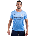 Show your passion and love for MANCHESTER CITY in this 2020/2021 Home JERSEY. Designed by Puma and made from breathable soft Polyester fabric with DryCELL technology that will keep you cool and comfortable. It comes in a Slim Fit with Short sleeves and Half crewneck Ribbed collar in Blue colour. Wear it like your champions in Etihad Stadium and feel the excitement and joy of football