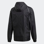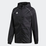 Rain or shine, the match goes on. Seal out the wet weather with this men's football rain jacket. A full-zip hood keeps you covered and dry on the sidelines, while a mesh lining helps manage airflow to keep you dry from the inside out. Contrast piping detail complements the adidas Badge of Sport.