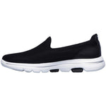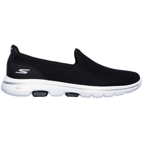The leaders in walking shoe technology continue to innovate with the Skechers GOwalk 5. Features lightweight, responsive ULTRA GO cushioning and high-rebound COMFORT PILLAR TECHNOLOGY for the ultimate in walking comfort. Flexible soft knit mesh fabric upper, Air Cooled Goga Mat insole system for comfort.15901. Fabric upper, fabric lining, rubber sole.