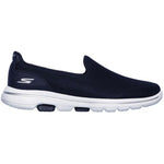 The leaders in walking shoe technology continue to innovate with the Skechers GOwalk 5. Features lightweight, responsive ULTRA GO cushioning and high-rebound COMFORT PILLAR TECHNOLOGY for the ultimate in walking comfort. Flexible soft knit mesh fabric upper, Air Cooled Goga Mat insole system for comfort. 15901. Fabric upper, fabric lining, rubber sole.