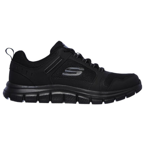 Keep your eyes on the sporty style and cushioned comfort with the SKECHERS Track - Knockhill shoe. Smooth action leather and mesh fabric upper in a lace up athletic training sneaker with stitching and overlay accents. Memory Foam insole.