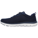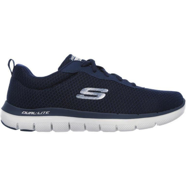 Put on a clinic in style and flexible comfort with the SKECHERS Flex Advantage 2.0 - Dayshow shoe. Athletic woven mesh fabric and synthetic upper in a lace up athletic training sneaker with stitching accents. Air Cooled Memory Foam insole.