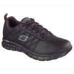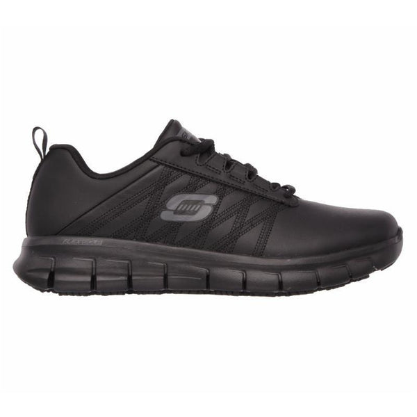 Sporty style, all day safety and comfort comes with the SKECHERS Work Relaxed Fit: Sure Track - Erath shoe. Smooth leather upper in a lace up sporty casual comfort work slip resistant sneaker with stitching accents and Memory Foam insole.