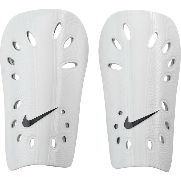 the Nike J Football Shin Guard is made with a tough composite shell and perforations for ventilated comfort.