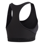 This sports bra helps keep everything in place so you can focus on your workout. The stretchy knit bra has a compression fit that offers medium support. The mesh panel in back keeps air circulating to cool you down.
