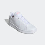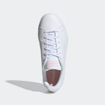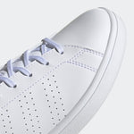 A court look for the streets. These shoes have a sleek leather-like upper punctuated with perforated 3-Stripes. The low-profile shape rides on a smooth rubber cupsole.