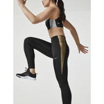 • Body: 83% recycled polyester/17%spandex. Overlays: 88% recycled polyester/12% spandex.
